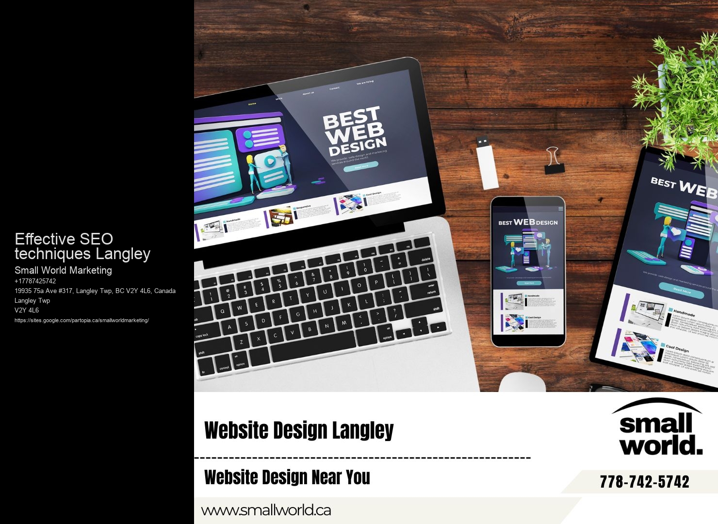 You're wondering how businesses outside Langley can target the local market? Small World Marketing's SEO strategies are designed to help you penetrate this area, making your brand visible and relevant to the Langley audience.